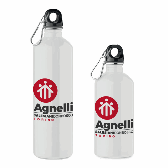 Acquista la borraccia bianca con stampa a sublimazione personalizzata con il logo dell’Istituto Salesiano Agnelli, nei formati da 500 ml e 750 ml.