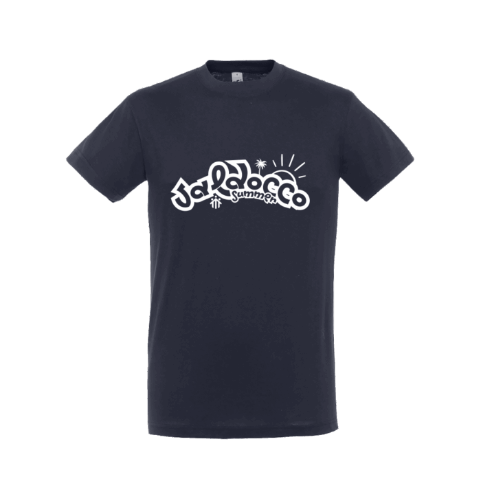 Acquista la T-shirt estiva personalizzata dalla scuola media Valdocco con la scritta “Valdocco Summer” e la stampa di una palma sul fronte della maglietta.